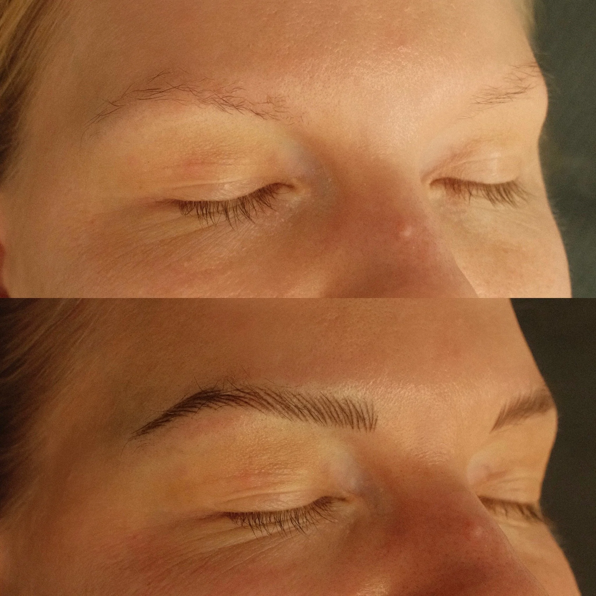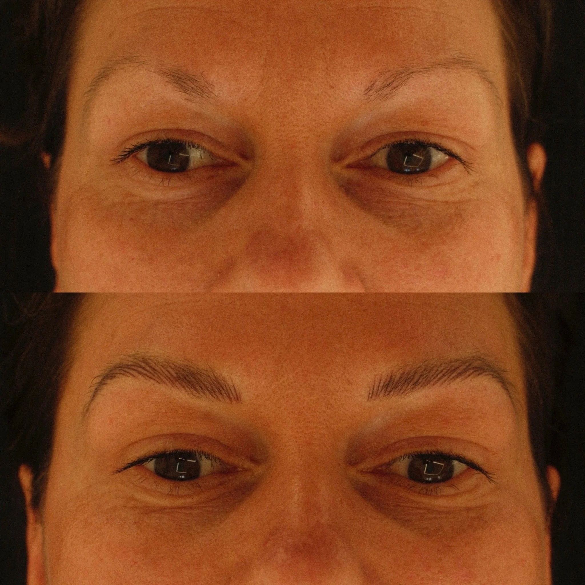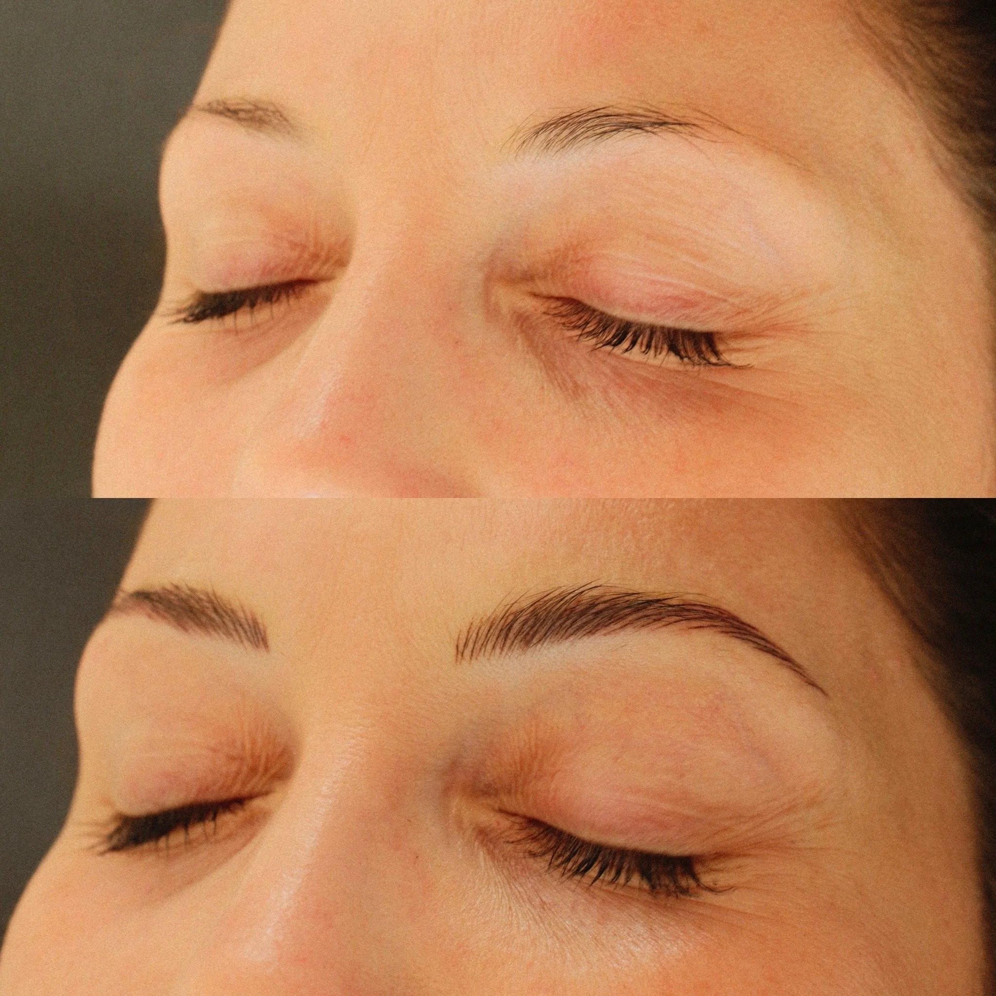 Die Brauen wirken zunächst kräftiger. Nach ca. 6–8 Wochen wird die Farbe feiner und natürlicher. Leichte Rötungen oder Schwellungen sind möglich und normal.